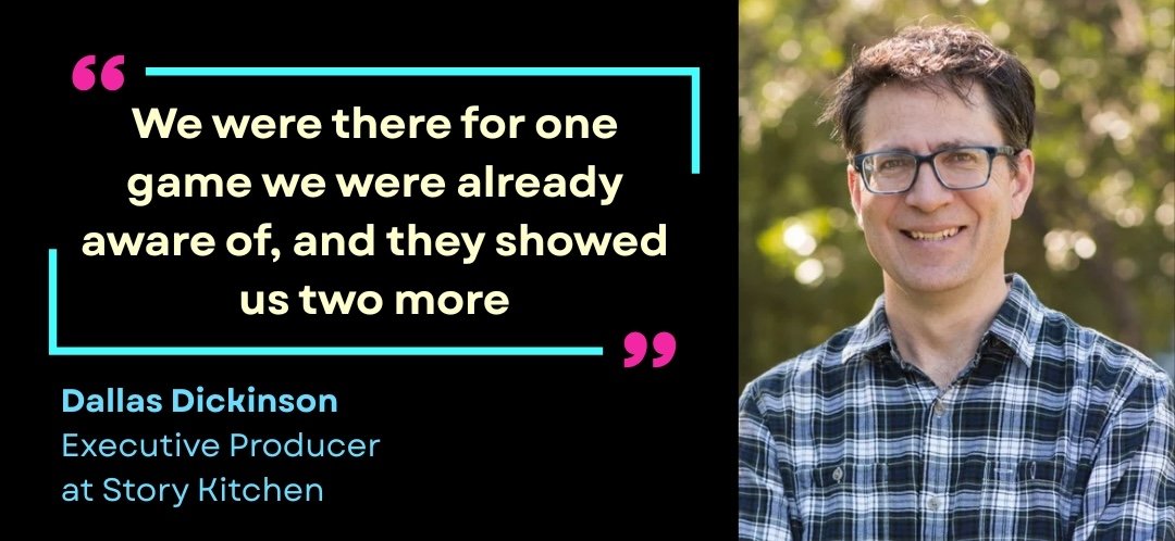 Story Kitchen likes to get involved as early as possible – Johnson recounts a recent visit to a publisher where they were shown three upcoming games to explore whether they might be potential TV or movie material. "We were there for one game we were already aware of, and they showed us two more," says Dickinson.